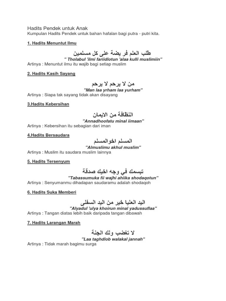 Hafalan Hadits Pendek Untuk Anak Tk Pdf - Kumpulan Hadits Pendek Hafalan Anak Pdf : Barangsiapa tidak menyayangi maka tidak disayangi. (hr.. اِنَّا نُهِيْنَا اَنْ نُرَى عَوْرَاتَنَا. Download kumpulan dan hafalan hadist pendek apk latest version 1.0 for android, windows pc, mac. Memotivasi kami sebagai orang tua untuk terus belajar menjadi ayah dan ibu, . Mengenal dan menghafal hadits harus dilakukan sejak dini. "apabila kamu diundang pada suatu acara (jamuan) hendaklah kamu penuhi (perkenankan)." (hr.